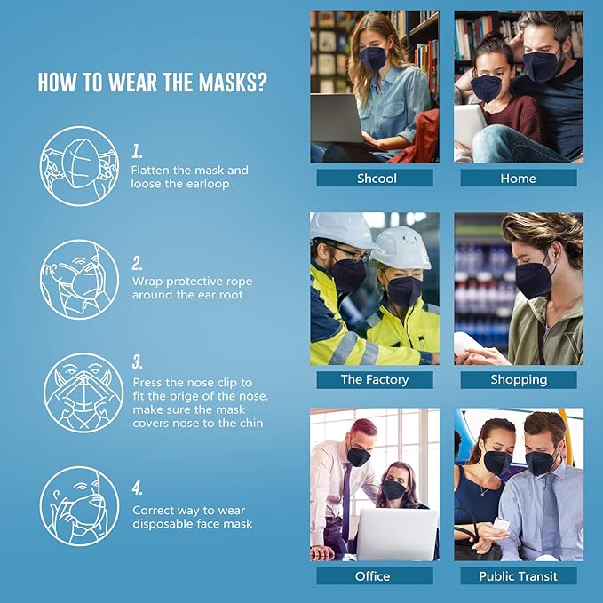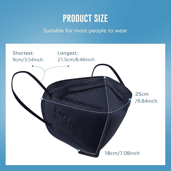 - Powerful Protective Barrier : Not easy to drop, no need to adjust it when you work. Softer elastic ear loop design of the KN95 face mask helps eliminate pressure on the ears for comfortable experience. Adjustable nose clip design can help the mask perfectly attach onto your face. The four sides join tightly to the face; Hence, the protective mask KN95 avoids unfiltered air directly entering into.