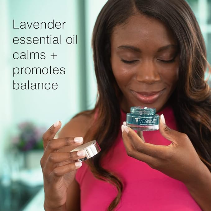 MD Complete Quench & Restore Advanced Hyaluronic Acid Treatment For Plumping and Firming on Face, Hands and body With Hyaluronic Acid, Peptides, Niacinamide and Lactic Acid Lavender Scent 1.0 Fl. Oz