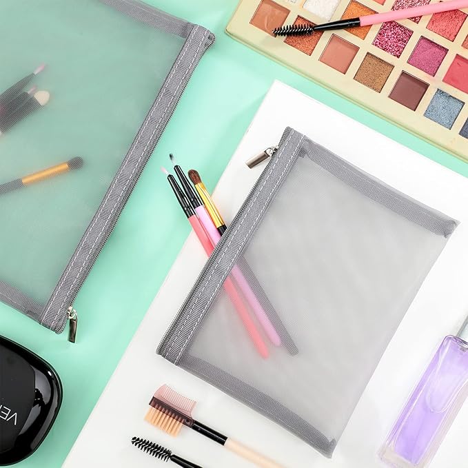 6 Pieces Mesh Makeup Bags Mesh Cosmetic Bag Portable Travel Organizing Zipper Pouch Toiletries Makeup Pouches for Home Office Travel Accessories