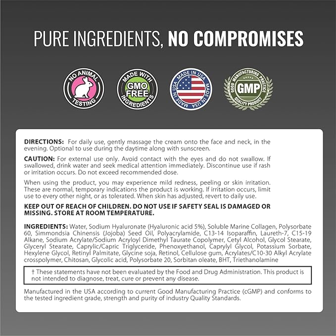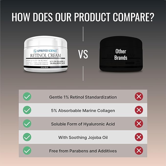 Approved Science Retinol Cream with 1% Retinol, 5% Collagen, and 5% Hyaluronic Acid - Revitalize, Brighten, Firm, and Plump Skin - 2 fl. oz. (60 ml)