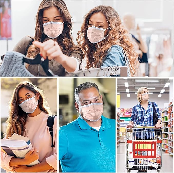 akgk Disposable Face Masks 100Pcs, 3 Layer Protective Face Mask Blush Pink Face Masks