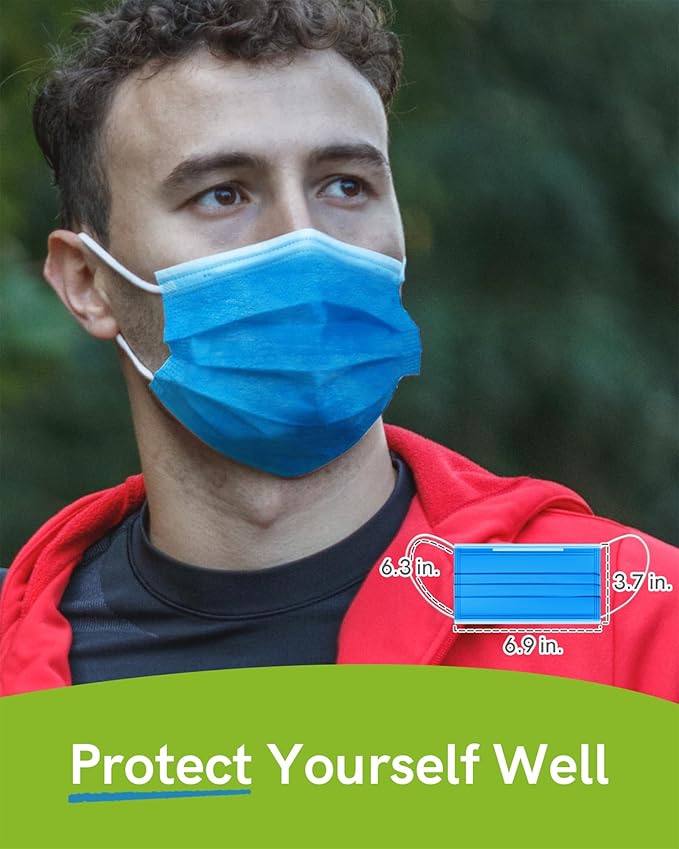 FriCARE Disposable Face Masks, 3-Ply ASTM Level 3 Medical Grade, FSA/HSA Eligible, Breathable & Comfortable for Allergy/Sun Protection, 50 Pack Medium Blue