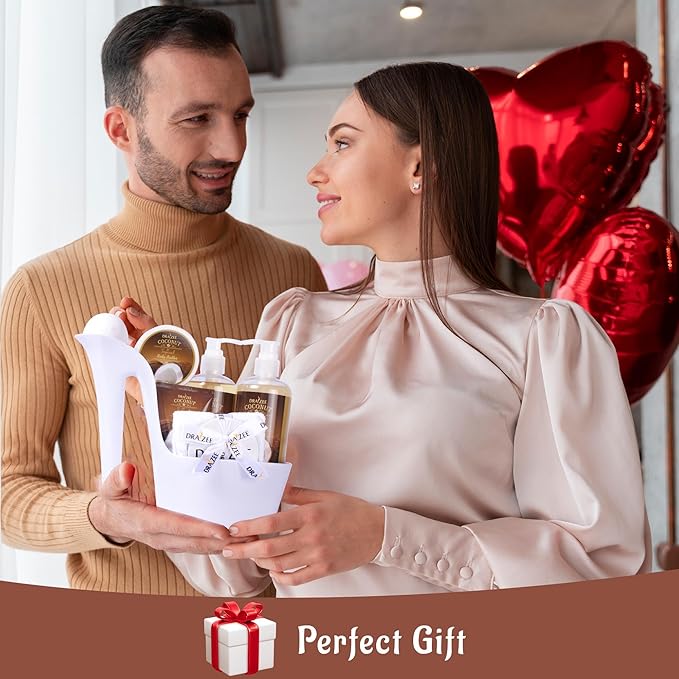 Draizee Luxury Spa Gifts for Women – 8 Pc Coconut Bath & Body Set with Bubble Bath, Lotion, Body Butter & More – Self Care Gift Basket for Wife, Mom, Girlfriend