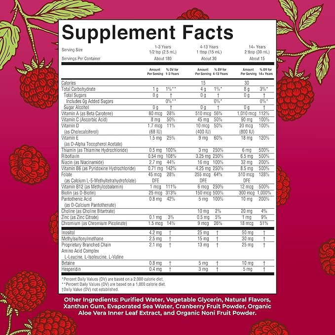 - For Most Lifestyles: MaryRuth's Raspberry Liquid Morning Multivitamins for Women, Men, Kids is Non-GMO, Vegan, Dairy Free, Nut Free, Gluten & Wheat Free, Sugar Free. Each bottle comes with about 15 servings. Multivitamin for women 50 and over, under 50, men 50 and over, under 50, and kids ages 2+.