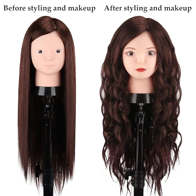 - 【Hair Condition】80% real human hair. Total length 23.5inch, from forehead to tip of hair in the back, Contains a free table clamp stand and DIY hair styling braid set, you are free to design the hair style as you like to improve your level of hairdressing
