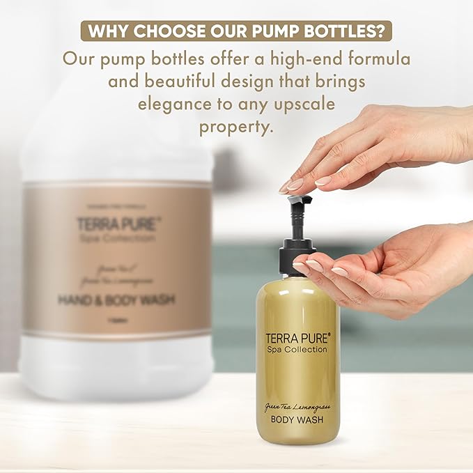 - WHY CHOOSE THE GALLON KIT? No need to give up elegance and allure while reducing single-use plastics. Our gallon-sized high-end formulas & beautiful designs bring elegance to any upscale property. Reuse and Refill the matching bottles easily!