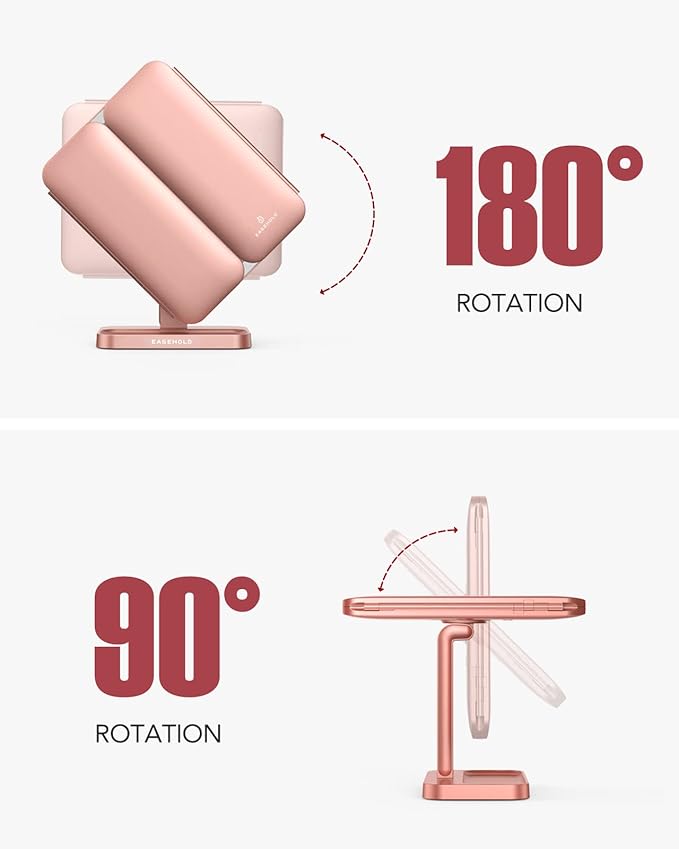 - 【Upgraded & Professional 3-Side Light Configuration】: Equipped with 116 eye-caring & professional LEDs, EASEHOLD makeup mirror for desk uses Side-Emitting LED Strip Tech, the both side makeup mirrors are also lighted on the outer edges so there are no shadows on your face, which light bar is natural and soft, bright enough BUT not dazzling, perfect for use in dimly lit areas (Other mirrors only 21LEDs dazzling lamp beads, it will hurt your eyes If using a long time and makeup disaster )