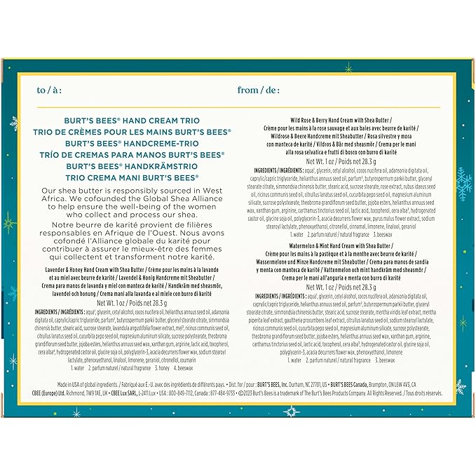 - PERFECT HOLIDAY GIFTS FOR HER: One Burt's Bees Hand Cream Trio Gift Set in festive holiday packaging that's a ready-to-give present for your favorite people—no wrapping required
