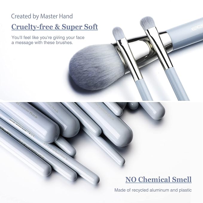 Makeup Brushes, EIGSHOW 15pcs Professional Makeup Brush Set With Case, Premium Synthetic for Foundation Contour Concealers Blush Eye Shadow (BABYBLUE)