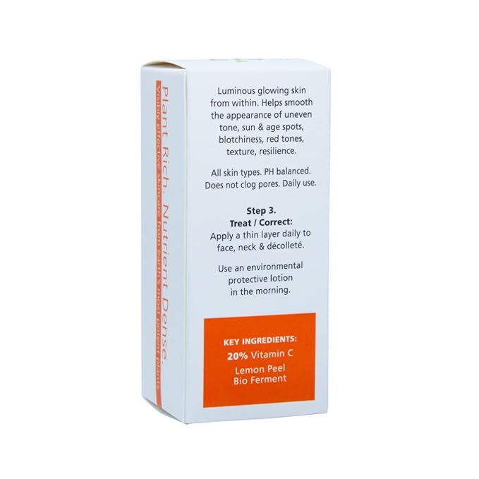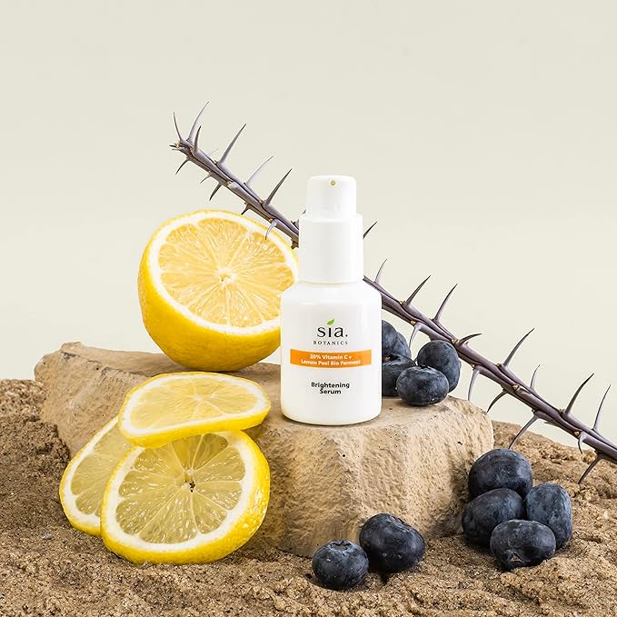 Sia Botanics Brightening Face Serum (30ml/1oz Porceline Bottle) | Facial Treatment w/Vitamin C, Lemon Peel Bio Ferment, Aloe Vera | Natural, Clean, Botanical Skincare for Women