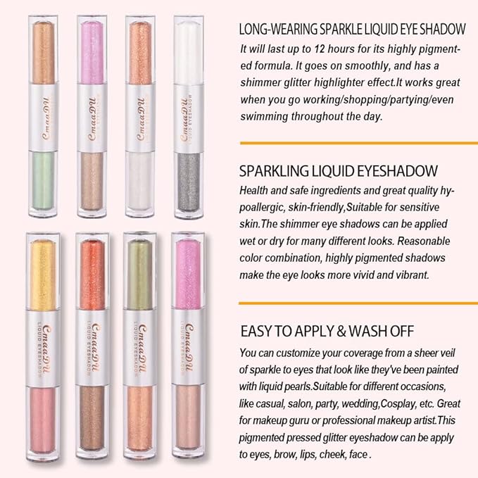 - ❤【Perfect Makeup】Each color is unique, beautiful, super pigmented. It's easy use and looks great on eyes.Each liquid eyeshadow is inspired by a different color tone to tone create bold, bright, beautiful eye looks