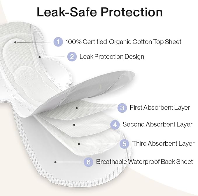 - LEAK PROTECTION DESIGN – No need to worry about any leakage with SANDIS organic cotton pads. These pads feature a safe leakage prevention structure with multiple layers of enhanced absorbing materials. The regular sized ultra thin pads come with wings for secure placement and coverage. These prevent overflowing with a super absorbent core that will keep you feeling drier for longer periods of time. Stay comfortable, clean, and re fresh ed in your own body with SANDIS organic cotton pads!