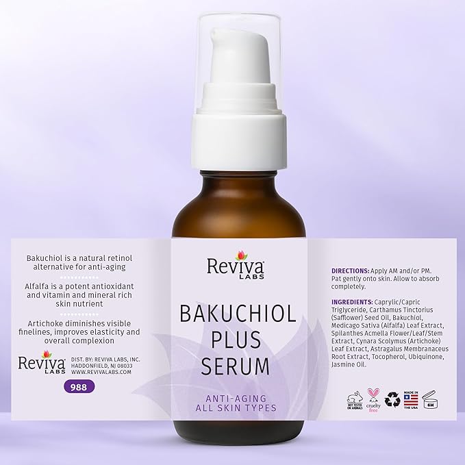 Reviva Labs Bakuchiol Serum – Natural Retinol Alternative Serum for Face with Alfalfa & Artichoke Extract – Hydrating Vegan Formula for Smoother, Firmer, Radiant-Looking Skin – 1 Fl Oz