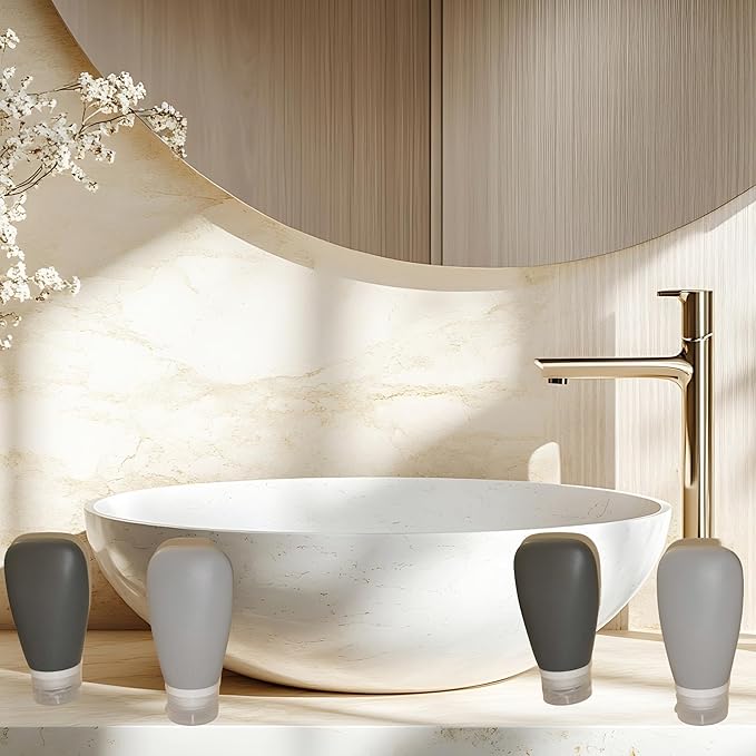 Travel Bottles for Toiletries, TSA Approved 3oz Leak Proof Silicone Soft Refillable Squeeze Travel Size Containers BPA Free for Cleansers, Lotions, Shampoo, Conditioner 4pk (2Black-2Gray)
