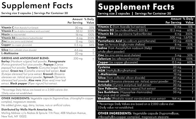 WelleCo, The Skin Elixir + The Hair Elixir, Vegan Beauty Supplements Bundle, Promotes Hair Growth & Reduces Breakage, Supports Healthy Skin & Collagen Formation, 60 Capsules Each