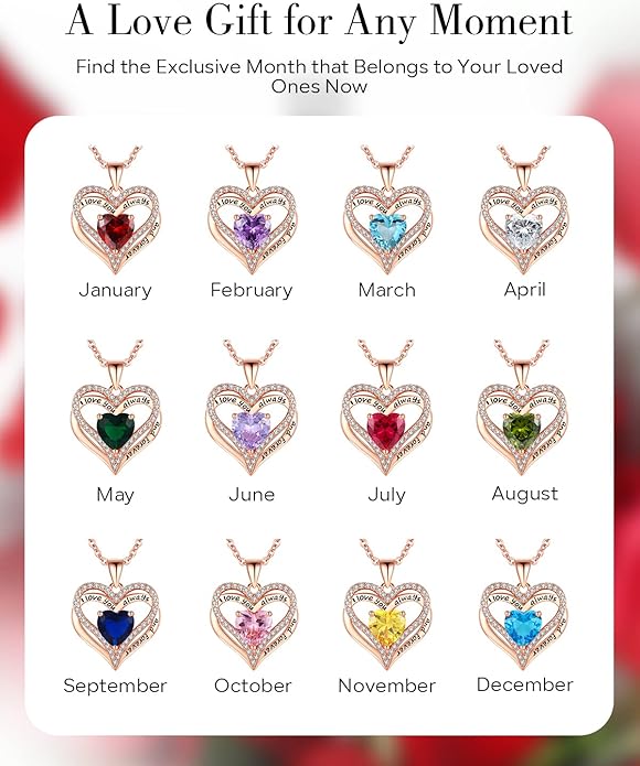 - 【12 Colors of Birthstones for 12 Months】The rose gold birthstone necklace makes a perfect birthday gift for women. Garnet stone for Jan, Amethyst for Feb, Aquamarine for March, Diamond for Apr, Emerald for May, Alexandrite for June, Ruby for July, Peridot for Aug, Sapphire for Sept, Tourmaline for Oct, Citrine for Nov, Turquoise for Dec.
