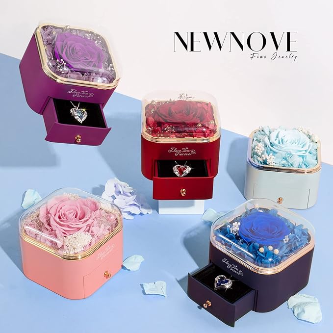 - LOVE AND A ROSE CAN'T BE HID: what else can express your love except an eternal rose with a sparkling love heart necklace? What else would be more suitable as a stocking stuffers for women than our rose gift? NEWNOVE selected fresh roses and preserve them in a gift box, where angel wings necklace is hidden as well.