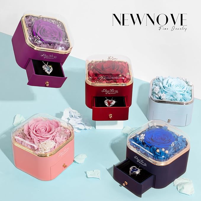 - LOVE AND A ROSE CAN'T BE HID: what else can express your love except an eternal rose with a sparkling love heart necklace? What else would be more suitable as a stocking stuffers for women than our rose gift? NEWNOVE selected fresh roses and preserve them in a gift box, where angel wings necklace is hidden as well.