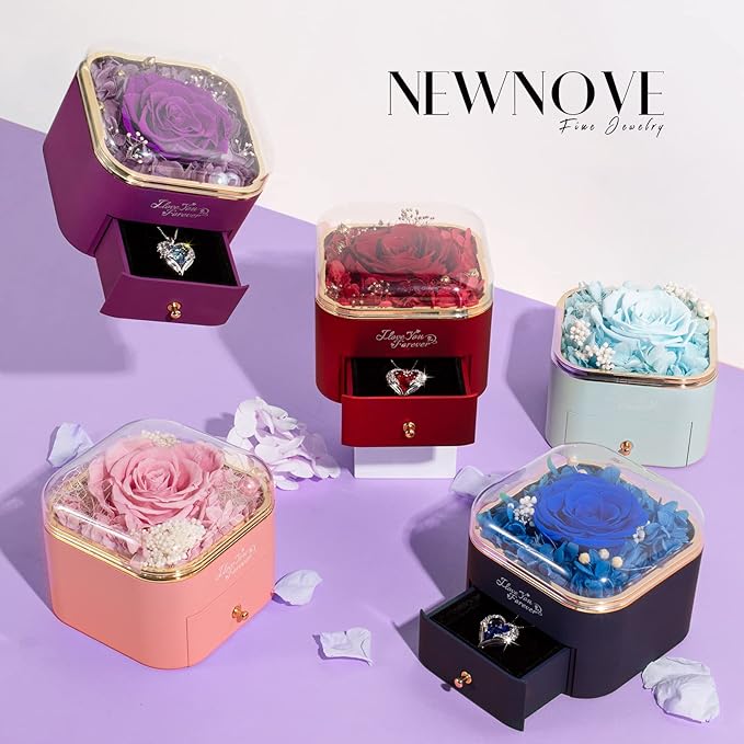 - LOVE AND A ROSE CAN'T BE HID: what else can express your love except an eternal rose with a sparkling love heart necklace? What else would be more suitable as a mothers day gifts than our rose gift? NEWNOVE selected fresh roses and preserve them in a gift box, where angel wings necklace is hidden as well