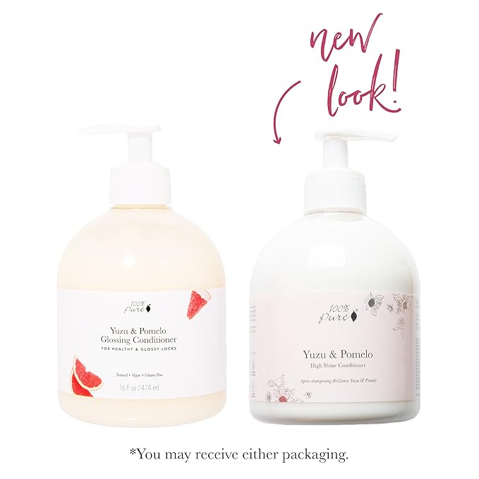 100% PURE Yuzu & Pomelo Glossing Conditioner Revitalizing & Hydrating Nutrient Boost of Kelp Flax Seed Oil & Vitamin E Helps Restore Hair Shine Body & Strength for Women & Men, Vegan - 16 Fl Oz