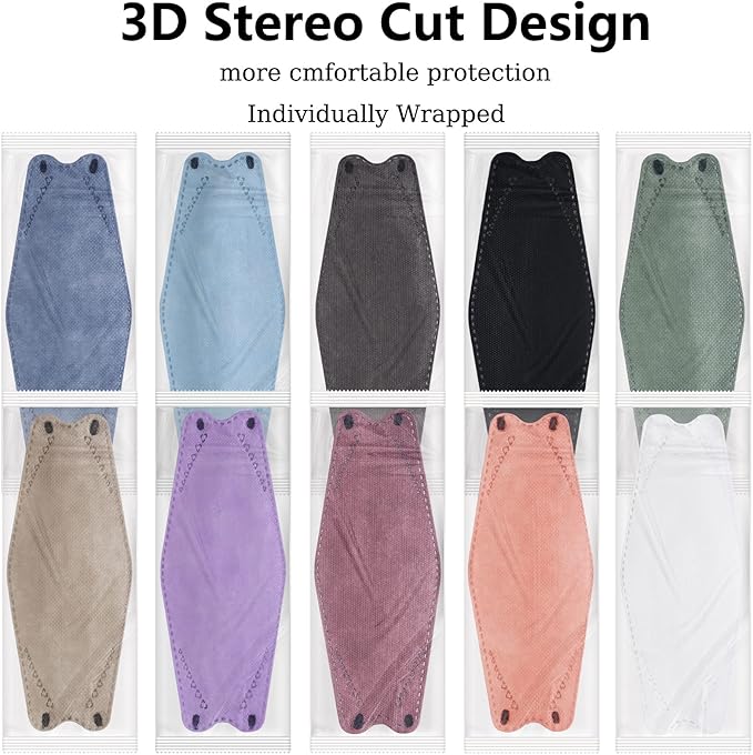 100Pcs KF94 Masks, Individually Wrapped 3D Fish Type Masks for Adult, 4 Layer Protective Face Mask