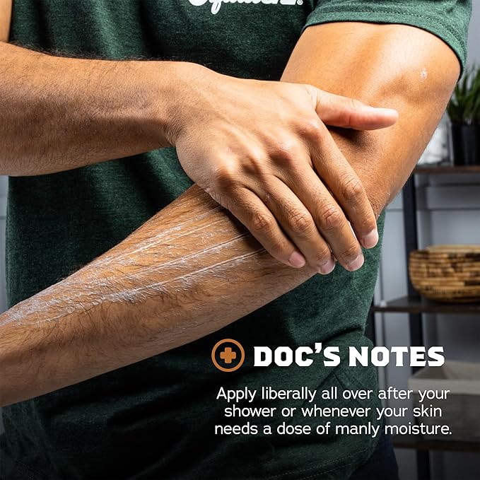 - DOC’S NOTES - Apply liberally all over after your shower or whenever your skin needs a dose of manly moisture.