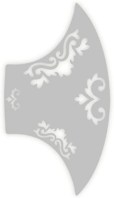 - Inspiration: Flourishes, masquerade masks, masquerade makeup, New Year’s Eve Party looks. Contains one 3.5″ x 7″ laser cut mylar stencil, oval in shape.