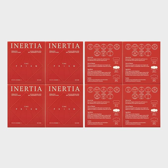 Truly Organic INERTIA Pads - The Prism with Wings for Women Regular Absorbency (40 Count) - The Best Absorbency, NO Petroleum-Based microplastic, Chlorine, or Fragrance. (Pack of 4)
