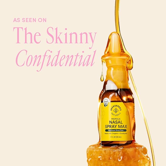 Beekeeper's Naturals Propolis Nasal Rinse Spray Max, Relief for Adults w/Eucalyptus, Oregano & Saline, Clears Nasal Congestion, Moisturizes Sinus Canal, & Decongest Sinus Cavities, 1 fl oz