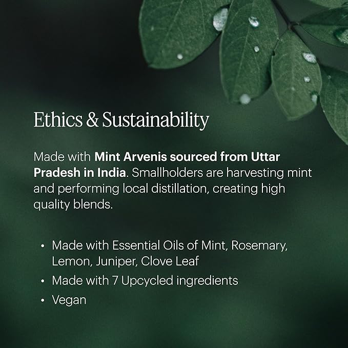 - Sustainably Sourced Ingredients – Crafted with high-quality, ethically sourced essential oils, including Mint Arvenis from India, and made with seven upcycled ingredients. This eco-conscious blend delivers a fresh, clean scent that maintains the ambiance of a well-kept home.