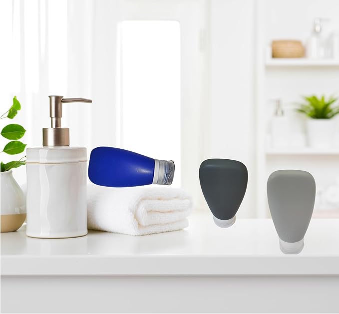 - TSA CARRY ON READY SIZE: 3oz 3-pk set of refillable containers, silicone travel bottles 90-mls just right for TSA approved size. Our signature soft squeezable on ALL sides style bottles, are refillable bottles that allows for continue refills for traveling convenience.