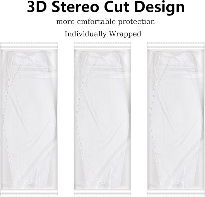 - 【Premium Quality】: Individually wrapped design. The unique ergonomic structure tri-folding design provides a closer, more secure fit around nose and cheeks and under the chin.