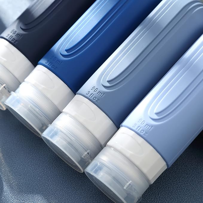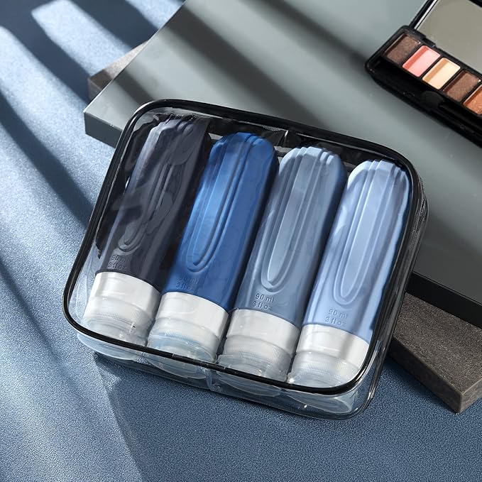 Travel Bottles for Toiletries, Tsa Approved 3oz Travel Size Containers BPA Free Leak Proof Refillable Liquid Silicone Squeezable Travel Accessories for Shampoo Conditioner Lotion (4 Pack)