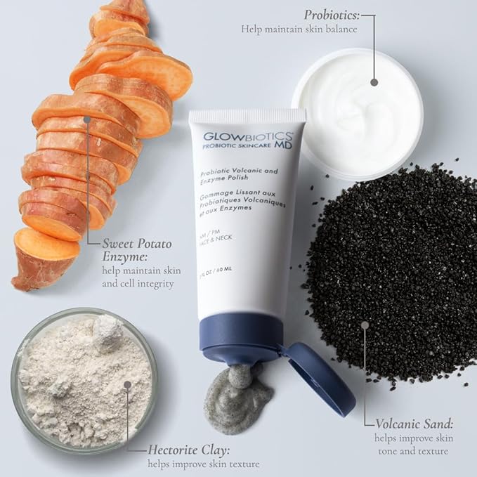 Glowbiotics Volcanic & Enzyme Polish: Probiotic Brightening Facial Scrub with Malic Acid for Luminous Skin, Exfoliator for Face & Neck, Suitable for All Skin Types, 2 Fl Oz
