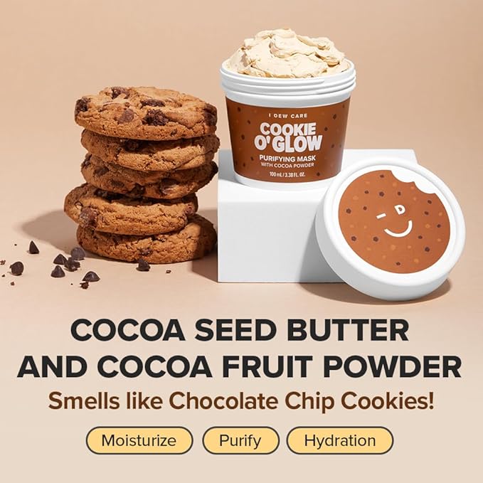 - COOKIE O' GLOW: This cookie dough-like wash-off mask has purifying cocoa seed butter, cocoa fruit powder & a chocolate cookie scent all wrapped up in a soft-serve textured mask.