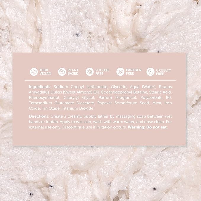 - Say goodbye to harsh chemicals that irritate your skin. Our fluffy vanilla whipped soap is paraben-free and sulfate-free, providing a gentle cleansing experience that won't strip your skin of its natural moisture. Loaded with natural ingredients like sweet almond oil and natural micas, our whipped soap is great for sensitive skin.