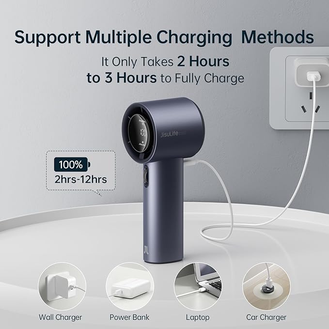 JISULIFE Portable Handheld Fan,Speed(1-100) Adjustable Turbo Mini and 3600mAh Battery Rechargeable Personal Fan,Digital Display,Gifts for Women Men Travel/Camping/Outdoor-Blue