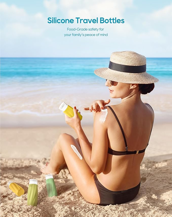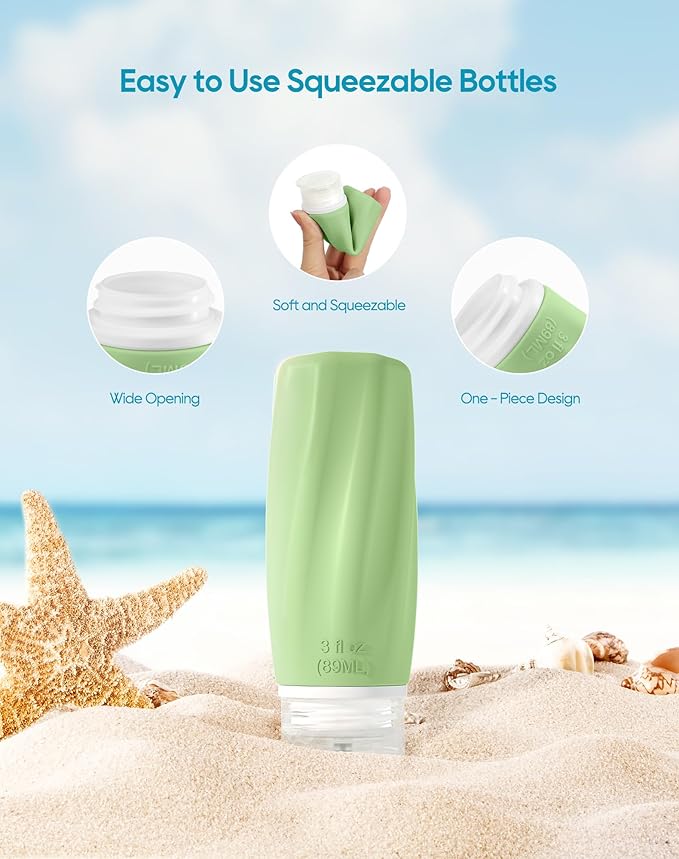 - 【Safe Silicone & Squeezable Material】 Our silicone travel bottles are made of food-grade silicone that making it safe for other liquids like sauce, salad dressing or even baby food. Moreover, these travel shampoo bottles are soft to use, flexible to carry around. It can make you squeeze out contents easily.