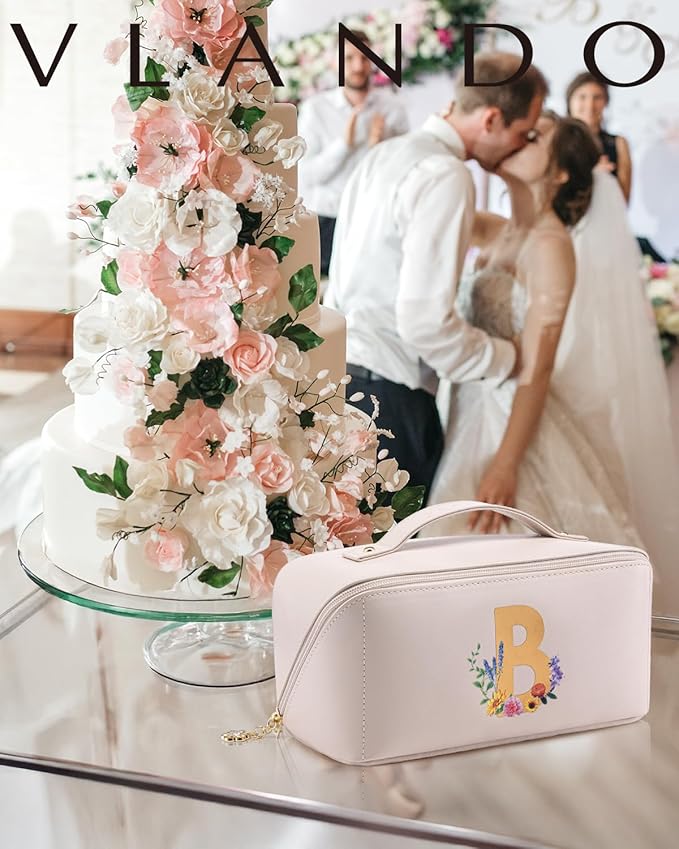 Vlando Mothers Day Gift for Mom,Graduation Gifts Personalized Makeup Organizer Cosmetic Bag,Travel Essential Birthday Gifts for Friends Daughter(Letter B)