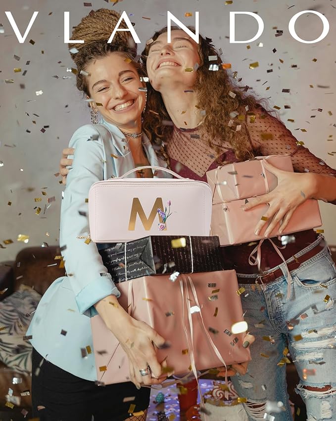 Vlando Mothers Day Gifts,Initial Makeup Bag,Travel Makeup Bag,Teacher Appreciation Gifts Birthday Gifts Bridesmaid Gifts Bride Wedding Gifts Graduation Gifts Valentine's Day Gift(Letter M)