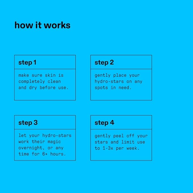 - EASY TO USE: Apply to clean, dry skin. Leave on overnight (or 6+ hours) and limit use to 1-3x per week. When you run out of stars, refill your compact with a new pack of Hydro-Star + Salicylic Acid.