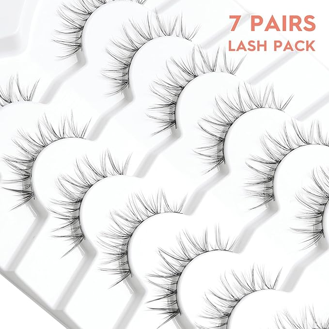 - VEGAN & REUSABLE: 7 pairs lashes pack. The fake eyelashes use ultra-light faux mink fibers, cruelty-free, skin friendly. Bring pretty lashes extension look without damaging your own eyelashes