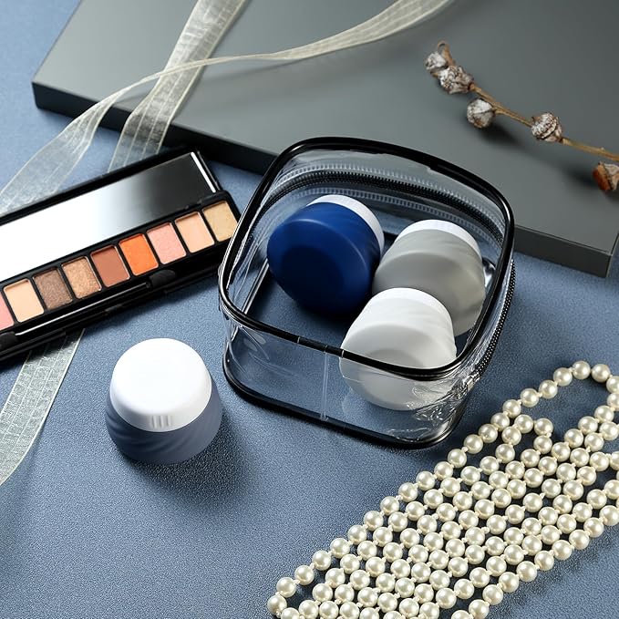 Gemice Travel Containers for Toiletries, Silicone Cream Jars TSA Approved Travel Size Containers with Clear Bag, Leak-proof Travel Accessories with Lid for Cosmetic Face Body Hand Cream (4 Pack)