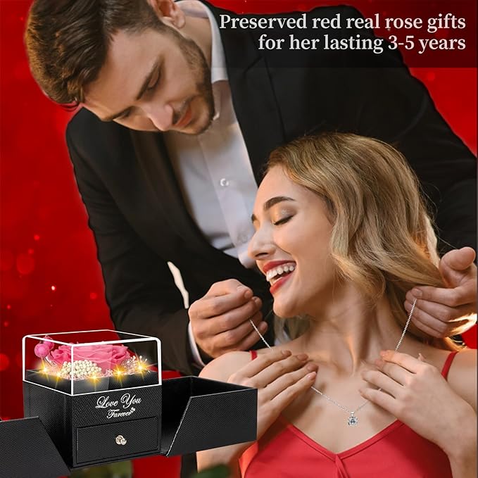 - 🎁【Im Sorry Gifts for Her Package】Mother's Day Gift Ideas Preserved Roses are well wrapped in the gift box,so that you could give directly without spend time on package. As an exquisite luxury gift,it can also store other jewelry. The necklace can be worn, and the rose box can be placed indoors as an ornament,Your lover will feel happy every day looking at it. 1 Preserved Eternal Rose + 1 Gift Box + 1 Double Heart Necklace(With I Love You Necklace in 100 Languages)+ 1 Gift Bag + 1 Greeting Card.