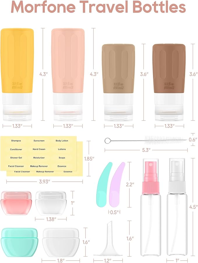 Morfone 16 Pack Travel Bottles Set for Toiletries, TSA Approved Travel Containers Leak Proof Silicone Squeezable Travel Accessories 2oz 3oz for Shampoo Conditioner Lotion Body Wash (BPA Free)