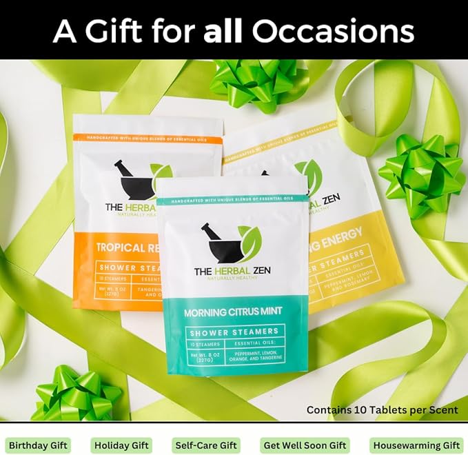 - Ultimate Self Care Kit - Transform your everyday shower to an at-home spa with the uplifting scent of citrus essential oils found in this aromatherapy shower steamer trio gift set.