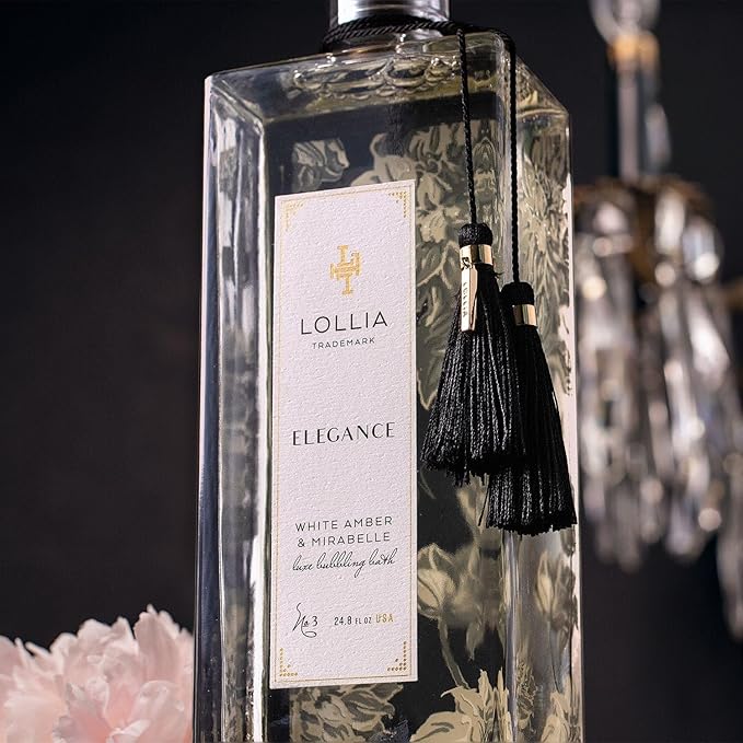 - ENCHANTING BUBBLE BATH: Melt away the day with this luxurious Bubble Bath. Lollia’s Elegance Bubble Bath for Adults is infused with White Amber and Mirabelle essences paired with notes of bright, crisp greens. A lather that leaves the skin petal soft.