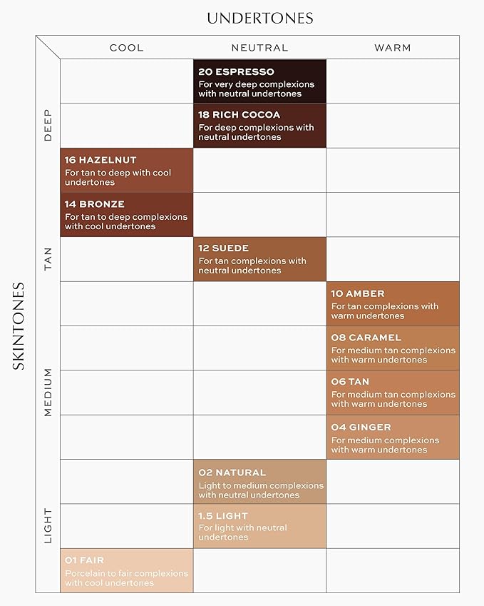 - SUEDE SKIN TINT: For tan complexions with neutral undertones. Effortlessly buildable sheer to medium coverage lets you customize your look. To use, shake vigorously. Apply a few pumps and blend into skin using fingertips, sponge, or brush. Build up coverage as desired