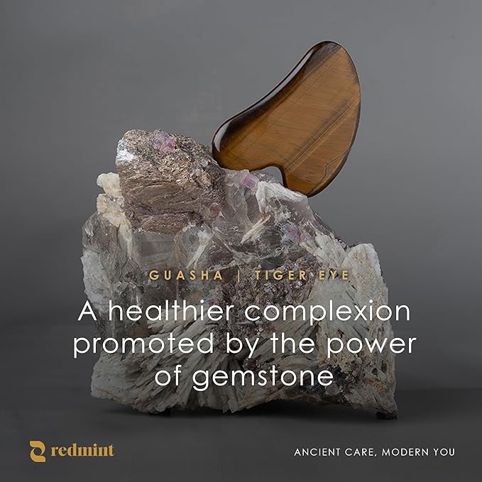 Redmint Tiger Eye Gua Sha Tool for Face | Rooted in Ancient TCM Wisdom | Rediscover Youthful Skin | Facial Massage Tools for Puffiness Reducing, Jawline Sculpting | Face Stone Gua Sha to Lift, Plump
