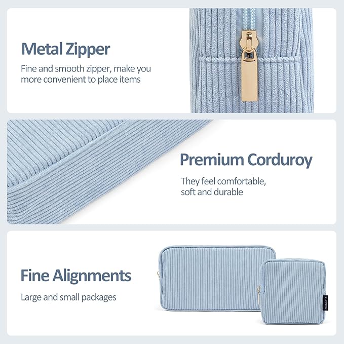 - Hight Quality - Soft corduroy Leather, nice lining, reliable gold zippers, zip-top closure. The cubes makeup bag is approx. 4.7" x 5.1" x 1.97". Perfect for organizing your backpack or purses.